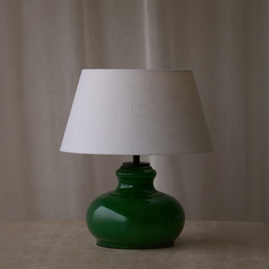 Bring a gentle glow to any corner with the Verde Table Lamp. Crafted from smooth glass with a rounded base, it blends timeless charm with a modern serenity. Its warm light and classic silhouette make it an effortless accent for bedside tables, reading nooks, or living spaces.