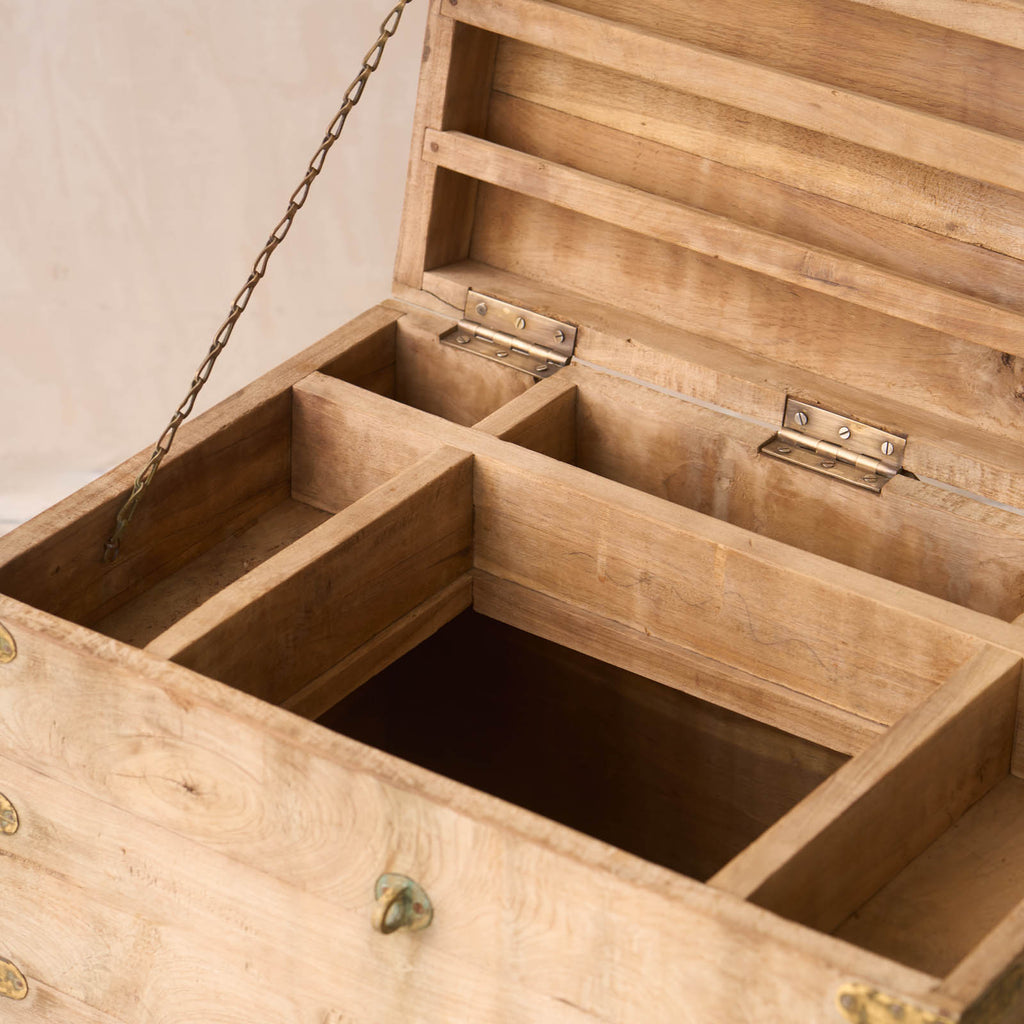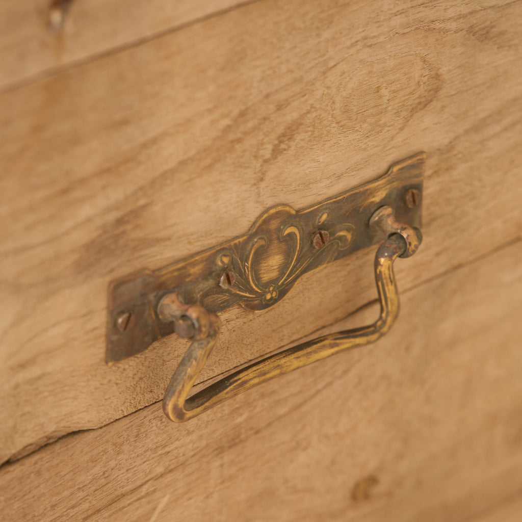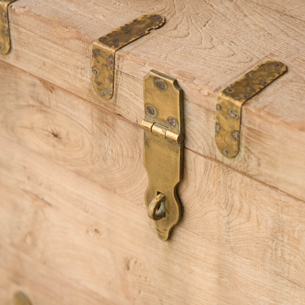 The Vintage chests are crafted using old teak wood panels from Rajasthan, India. Due to the scarcity of trees in the desert regions of Rajasthan and Gujarat, these chests were often made from multiple wooden panels.