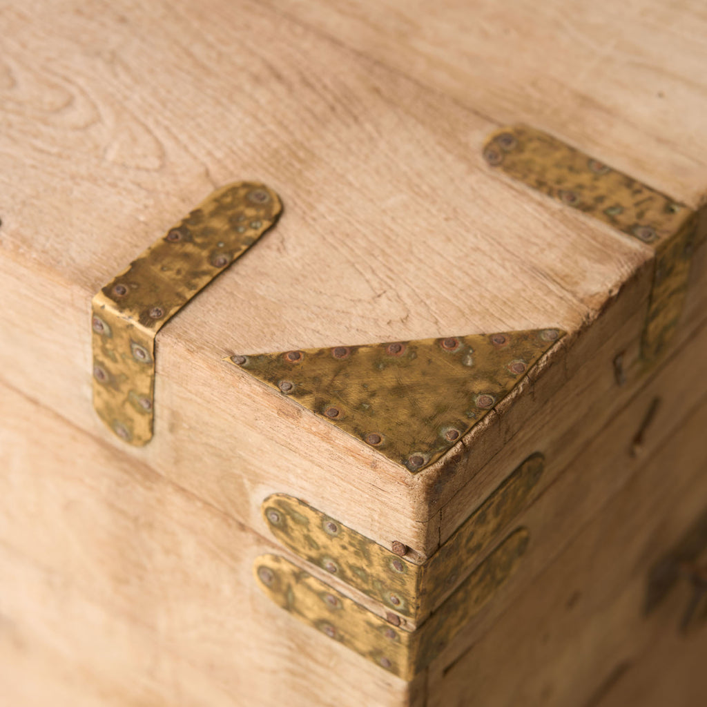 We source from the Northern most region of India, near the border of Pakistan, Rajasthan is home to artisan craftsman and hidden warehouses that produce the most unique and beautiful furniture pieces in the world. For 17 years, we have been on a search through these hidden places in Rajasthan, sourcing the pieces that speak to us and evoke the senses. Through a careful process, our carpenters remodel, reshape and restore the pieces we find on our journeys. The Vintage chests are crafted using repurposed teak wood panels from Rajasthan, India. Due to the scarcity of trees in the desert regions of Rajasthan and Gujarat, these chests were often made from multiple wooden panels.