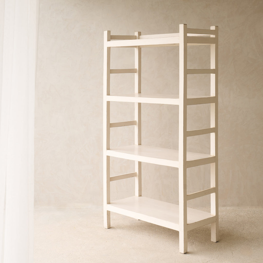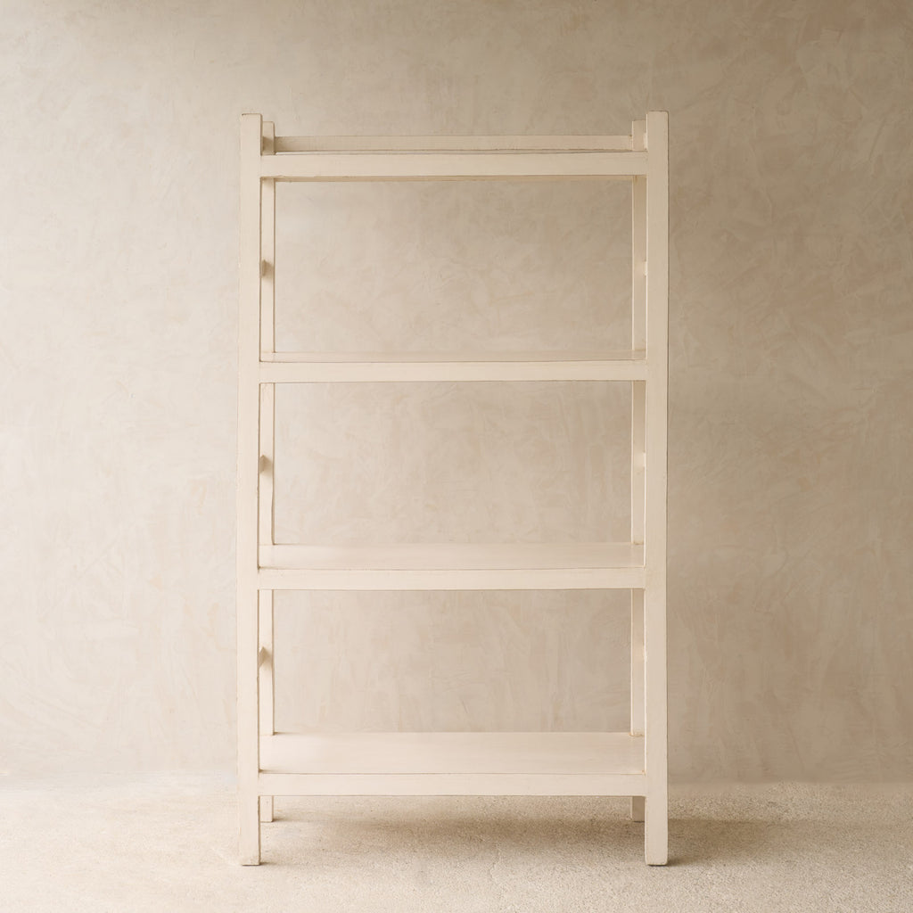 The Vintage Teak Shelf from India, Rajasthan. This unique piece has a beautiful worn look that adds to its charm. It is a highly practical piece that can be used to store tablewares such as bowls and plates, or make for a visually appealing store display.