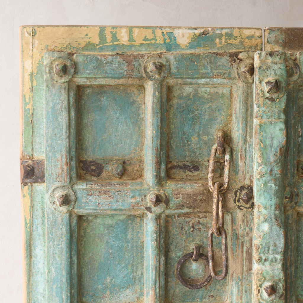 All of our antique Indian doors are truly unique, each intricately carved by skilled artisans who have honed their craft across generations. Sourced from various regions across India, these remarkable doors once graced the entrances of ancient Havelis. Featuring exquisite brass motifs as a hallmark detail, they add an extra layer of sophistication to any space. Whether adorning a hallway entrance or nestled behind a sofa, you're sure to discover one that perfectly complements your style.