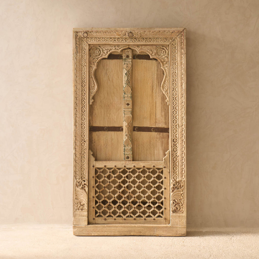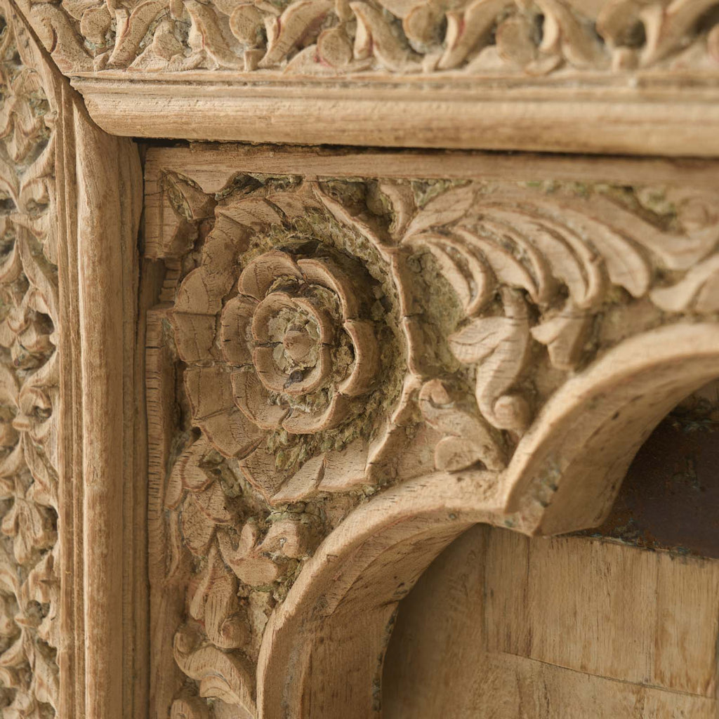 All of our antique Indian panels are truly one of a kind, originally hand-carved by skilled artisans using techniques passed down through generations. Sourced from old Havelis across India, these panels once served as decorative wall features, architectural accents, or parts of doorways. While not all are found in perfect condition, we preserve their most beautiful and intact sections. These salvaged panels are then cleaned, stabilised, and thoughtfully restored, ready to be appreciated as striking standalone pieces or integrated into modern interiors as headboards, wall art, or statement accents.