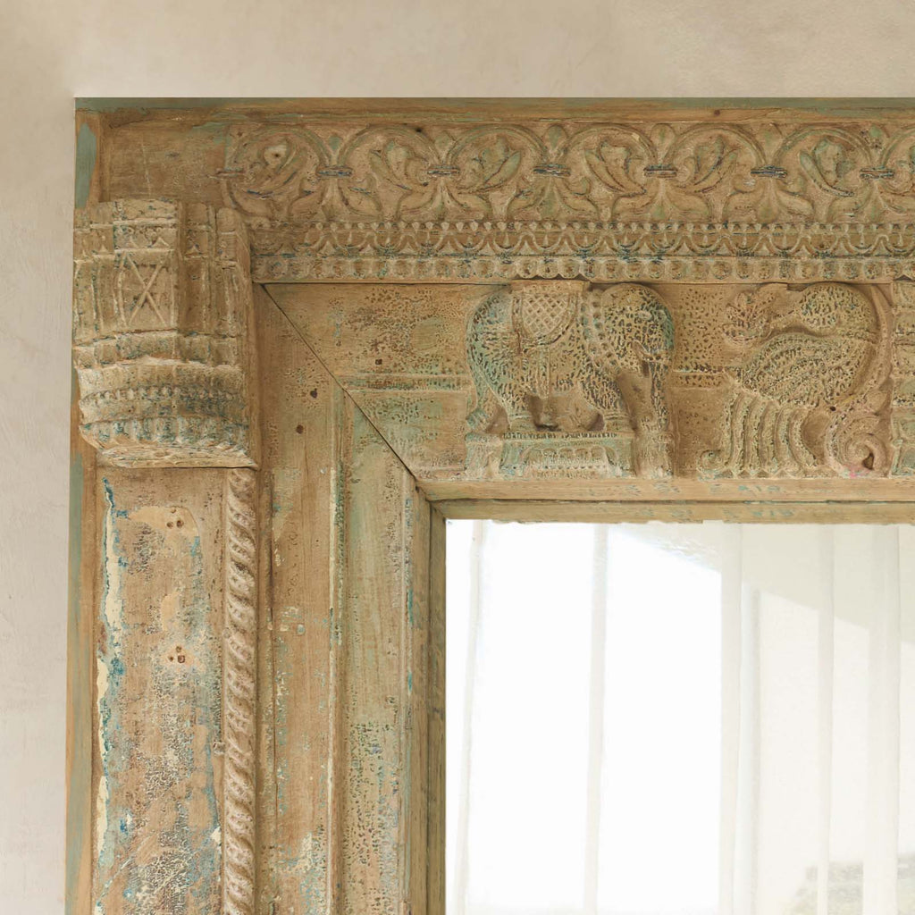 Originated from Rajasthan, India, each vintage mirror tells its own story. These frames are adorned with intricate carvings, details and hand-painted accents, showcasing the artistry and craftsmanship of the locals.