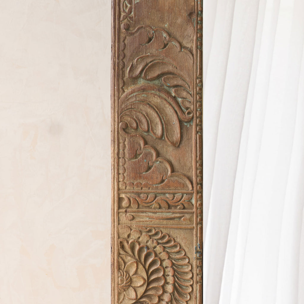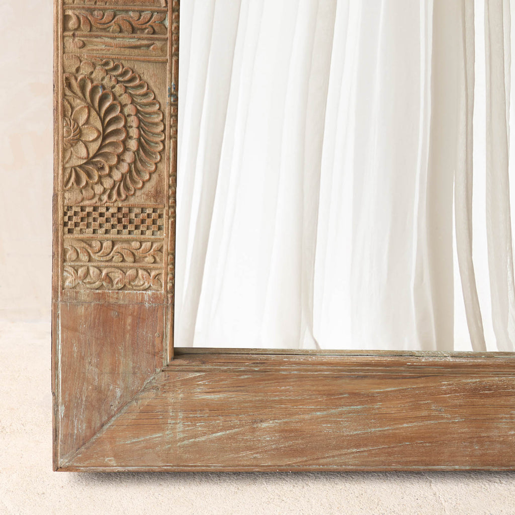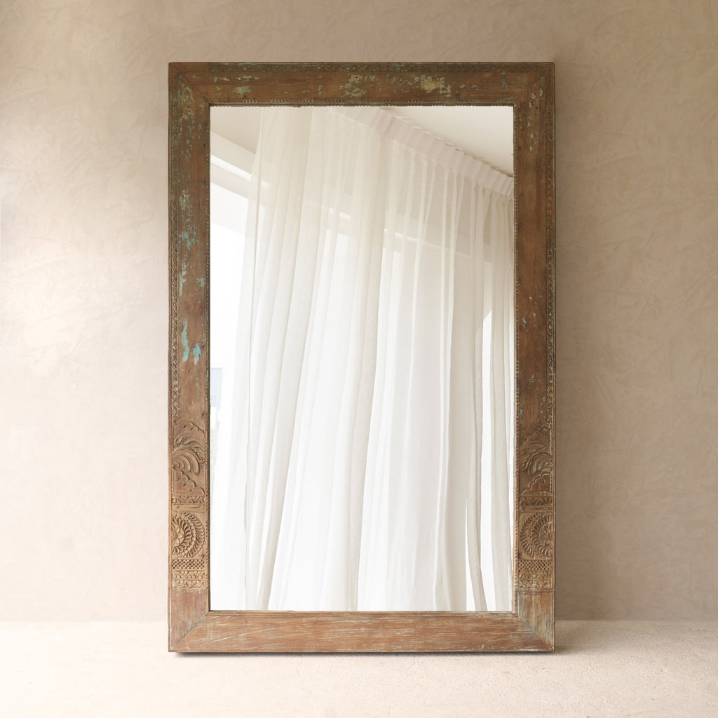 Originated from Rajasthan, India, each vintage mirror tells its own story. These frames are adorned with intricate carvings, details and hand-painted accents, showcasing the artistry and craftsmanship of the locals.