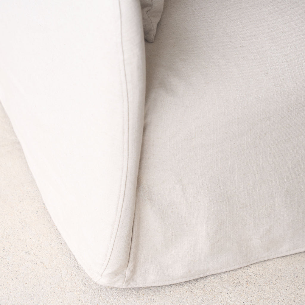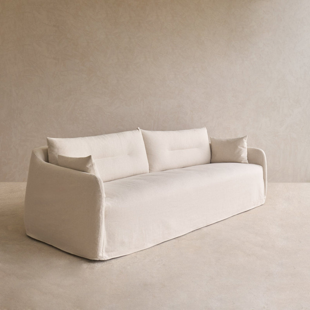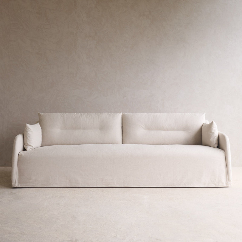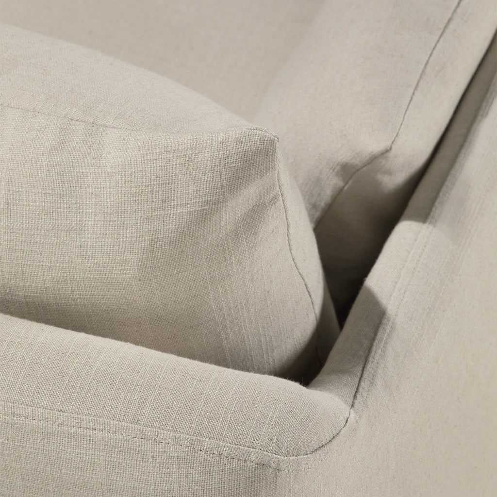 Features generous proportions designed for laid-back, comfortable living. Upholstered in a breathable linen-blend fabric with soft tactility. Features removable covers, suitable for gentle machine washing or dry-cleaning. Features a deep seat and plush cushions for enhanced comfort, and a removable slipcover for easy cleaning and long-term care. To minimize fading, avoid placing in direct sunlight.