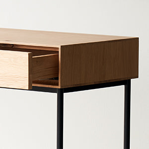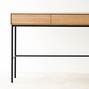 The Whitebird Desk from Ethnicraft is a beautifully minimalist piece designed to blend style and functionality seamlessly. Crafted from solid oak with a sleek black metal frame, it showcases the natural beauty of the wood while offering a modern and airy design. The desk’s clean lines and light construction make it ideal for home offices, studios, or even living spaces where a subtle, stylish workspace is needed.