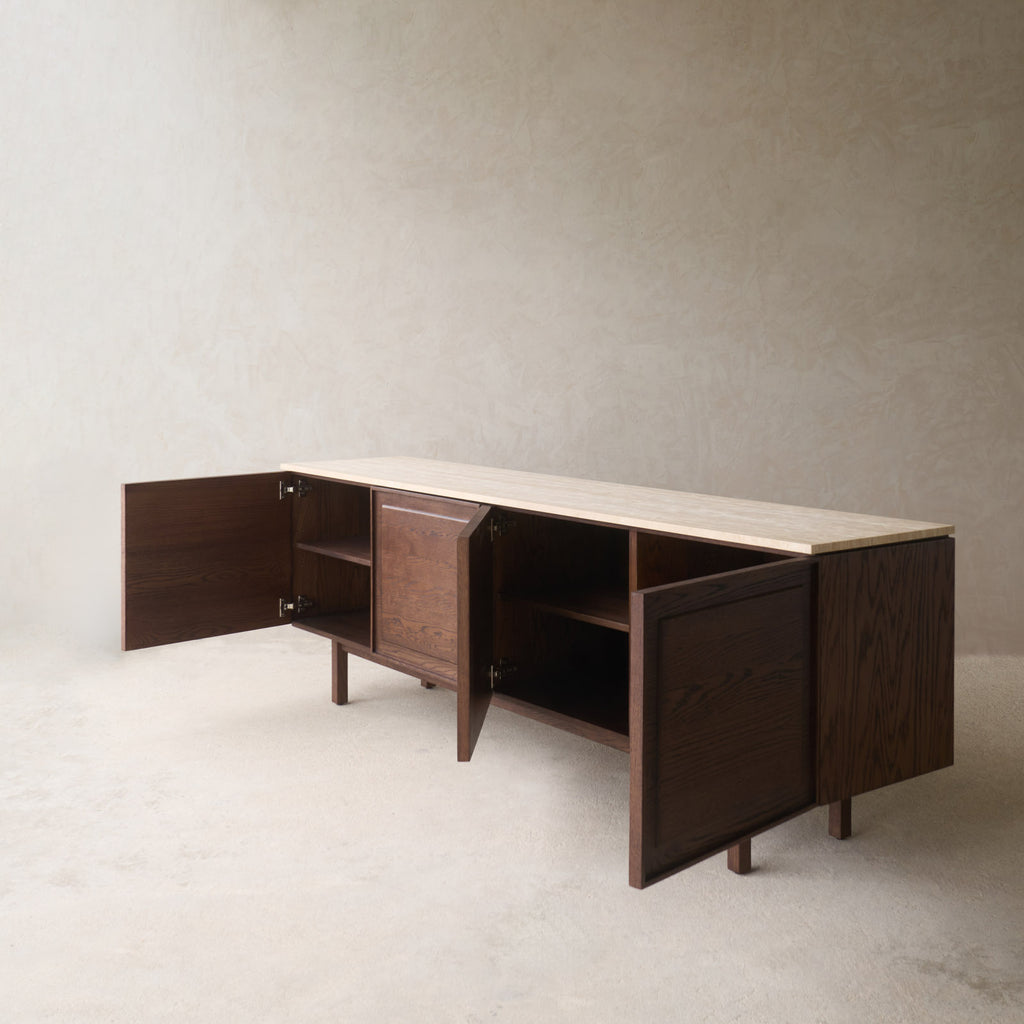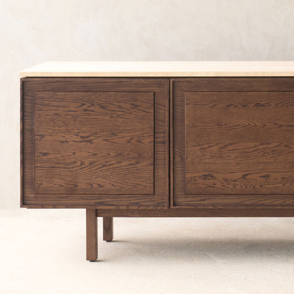 The Yorke Sideboard radiate a serene sense of balance. Their skillfully designed paneled motif on the fronts serves as a subtle connection between the past and the present, adorning an otherwise minimal and sleek structure that maintains its poise through well-considered proportions.