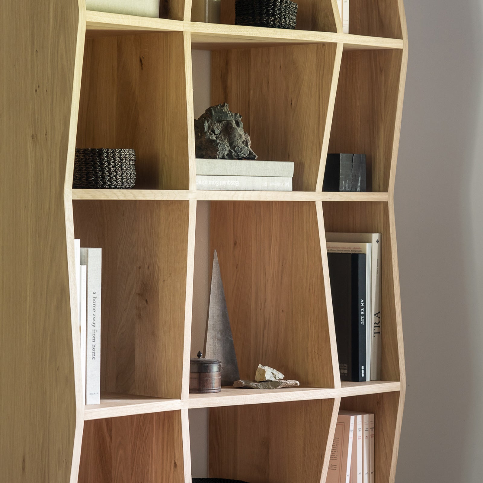 Z rack's repetitive game of lines and shadows give it a unique look and fully emphasize the character of the natural wood.